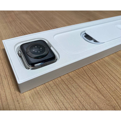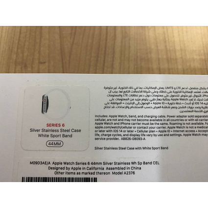 - Короткое название AV-ресивер Apple Watch 6 GPS + Cellular, 44 мм, сталь серебристого цвета, спортивный ремешок белый