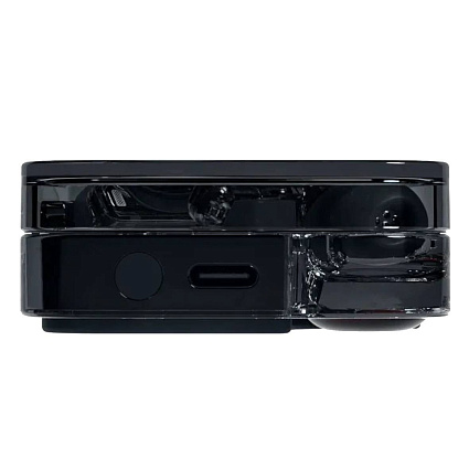 Уникальный стиль Nothing Ear с прозрачным корпусом в черном цвете выделяет их среди других наушников. Элегантное сочетание прозрачности и матовых элементов создает современный технологичный образ.
