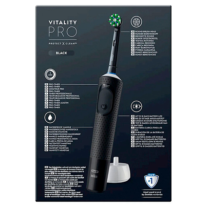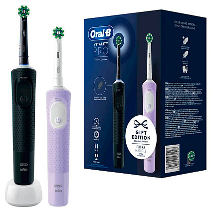 - Короткое название Электрическая зубная щетка Oral-B Vitality Pro Gift Edition Extra Handle, черный/фиолетовый