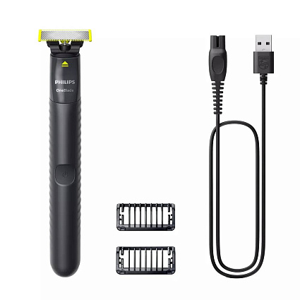 - В комплекте Электробритва Philips OneBlade, насадки - 2 шт., зарядное устройство, документация