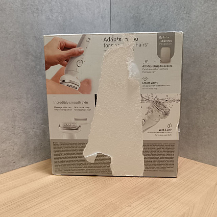 - В комплекте эпилятор, насадка для высокочастотного массажа, насадка для более близкого контакта с кожей, косметичка, кабель питания