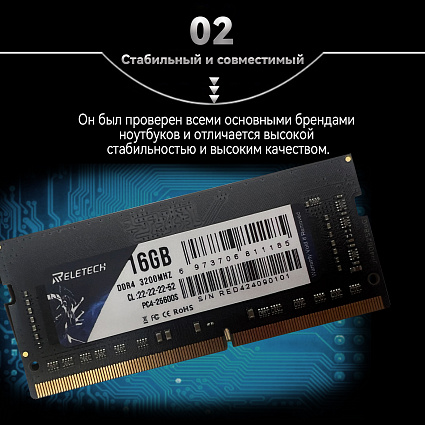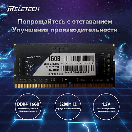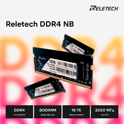 - Короткое название Оперативная память Reletech DDR4 NB, 16 Гб, SODIMM, 3200 МГц