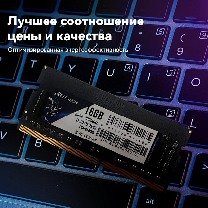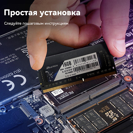 - В комплекте Оперативная память для ноутбука Reletech DDR4 NB, 8 Гб, SODIMM, 3200 МГц - 1 модуль памяти на 16 Гб