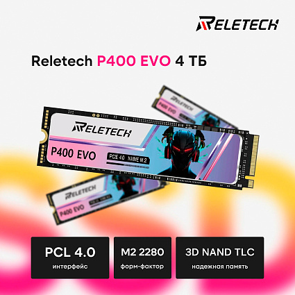 - Короткое название SSD Reletech P400 EVO, PCIE4.0, 4 Тб