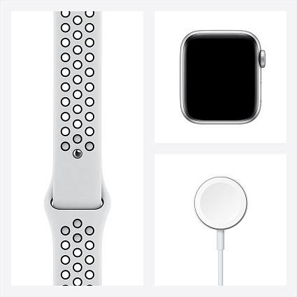 - Короткое название Умные часы Apple Watch Nike SE, 40 мм, алюминий серебристого цвета, ремешок Nike «чистая платина/черный»