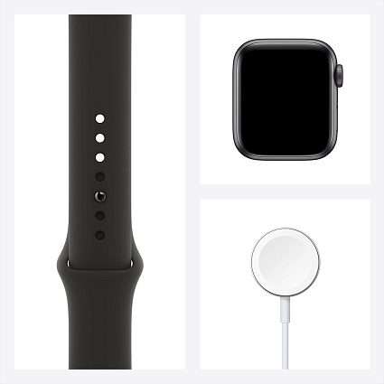 - Короткое название Умные часы Apple Watch SE, 40 мм, алюминий цвета «серый космос», спортивный ремешок черного цвета