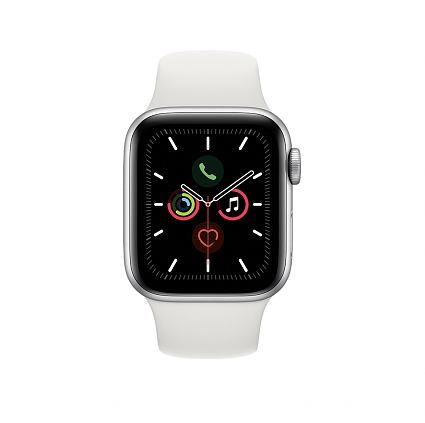 - Короткое название Умные часы Apple Watch Series 5, 40 мм, алюминий серебристого цвета, спортивный ремешок белого цвета