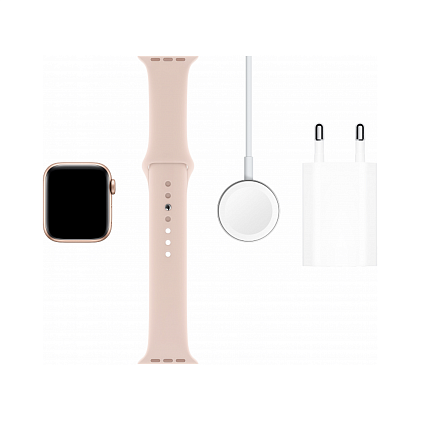 - Короткое название Умные часы Apple Watch Series 5, 40 мм, алюминий золотого цвета, спортивный ремешок «розовый песок»