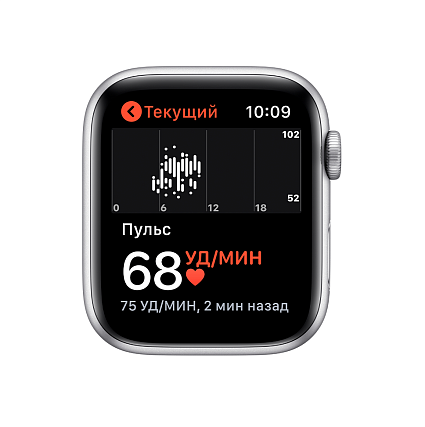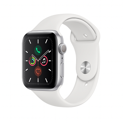 - Короткое название Умные часы Apple Watch Series 5, 44 мм, алюминий серебристого цвета, спортивный ремешок белого цвета