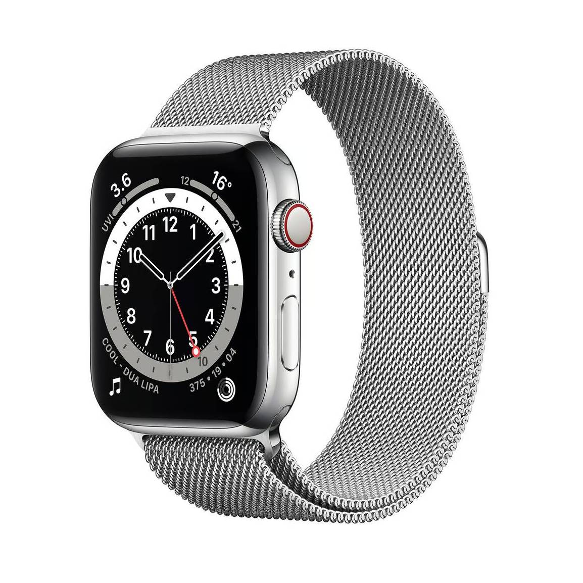 - Короткое название Умные часы Apple Watch Series 6 GPS + Cellular, 40 мм, сталь серебристого цвета, стальной ремешок серебристый