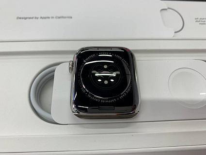 - Короткое название Умные часы Apple Watch Series 6 GPS + Cellular, 44 мм, сталь серебристого цвета, спортивный ремешок белый
