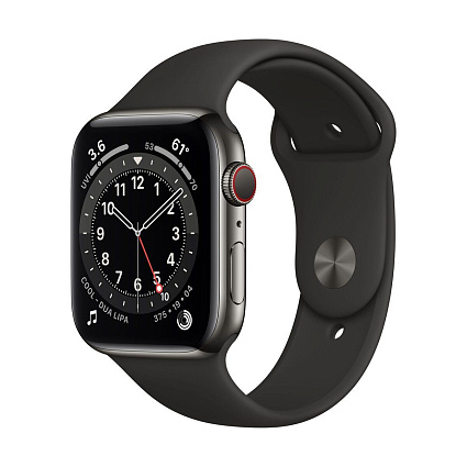 - Короткое название Умные часы Apple Watch Series 6 GPS + Cellular, 44 мм, сталь цвета графит, спортивный ремешок черный
