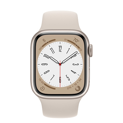 - Короткое название Умные часы Apple Watch Series 8 (GPS + Cellular) 41 мм, корпус из алюминия цвета «сияющая звезда», спортивный ремешок цвета «с