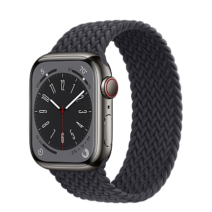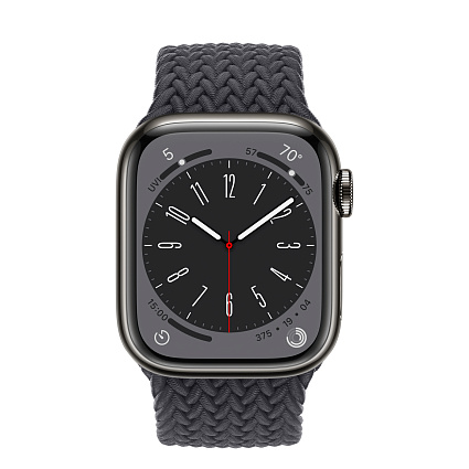 - Короткое название Умные часы Apple Watch Series 8 (GPS + Cellular) 41 mm, корпус из нержавеющей стали графитового цвета, ремешок цвета «полуночн