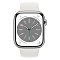 Умные часы Apple Watch Series 8 (GPS + Cellular) 45 мм, корпус из алюминия серебристого цвета, спортивный ремешок белого цвета