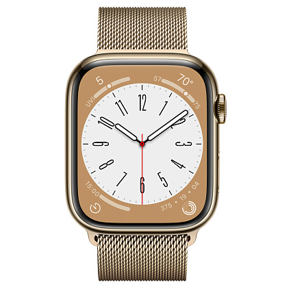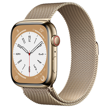 Отзывы про Умные часы Apple Watch Series 8 (GPS + Cellular) 45 mm, корпус из нержавеющий стали золотого цвета, браслет золотого цвета миланского плетения