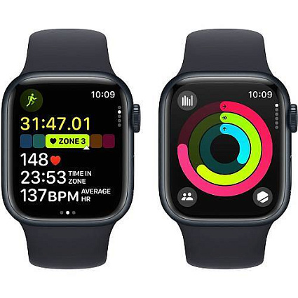 Умные часы Apple Watch Series 9, 41 мм, корпус из алюминия цвета «тёмная ночь», спортивный ремешок, S/M