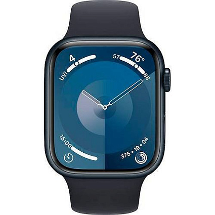 - Короткое название Умные часы Apple Watch Series 9, 45 мм, корпус из алюминия цвета «тёмная ночь», спортивный ремешок, M/L