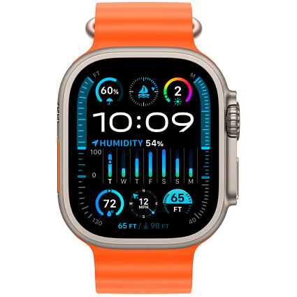 - Короткое название Умные часы Apple Watch Ultra 2 GPS + Cellular, 49 мм, корпус из титана, ремешок Ocean оранжевого цвета