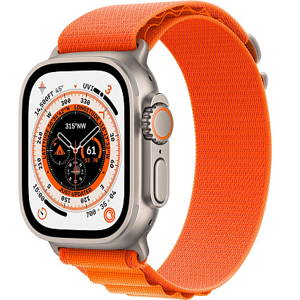 - Короткое название Умные часы Apple Watch Ultra GPS + Cellular, 49 мм, корпус из титана, ремешок Alpine оранжевого цвета S