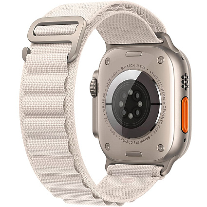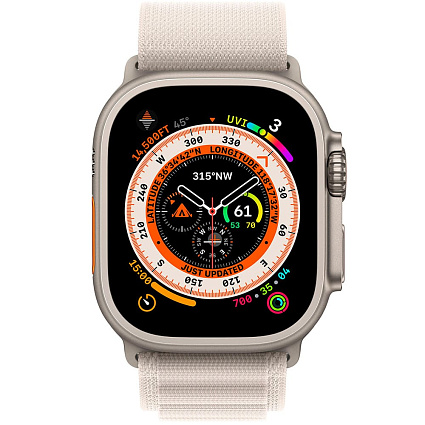 - Короткое название Умные часы Apple Watch Ultra GPS + Cellular, 49 мм, корпус из титана, ремешок Alpine цвета «сияющая звезда» M