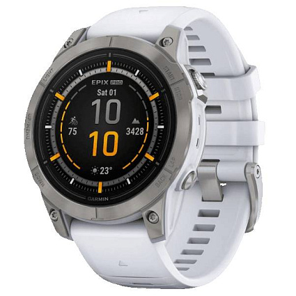 - Короткое название Умные часы Garmin Epix 2, Sapphire Edition 47 мм, титановый, белый DLC, белый ремешок