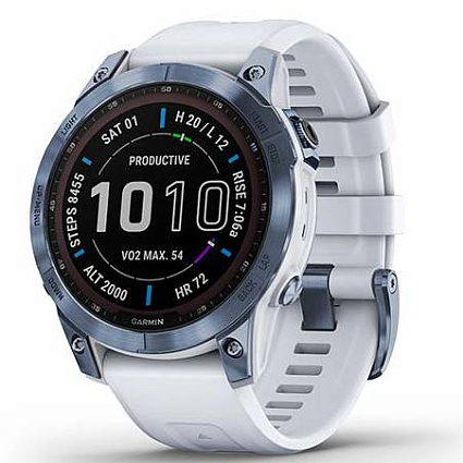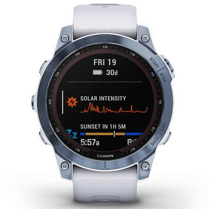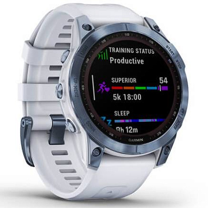 Отзывы про Умные часы Garmin Fenix 7 Sapphire Solar титановый синий минерал DLC с белым ремешком