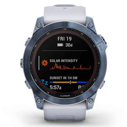 Отзывы про Умные часы Garmin Fenix 7X Sapphire Solar титановый синий минерал DLC с белым ремешком